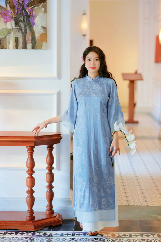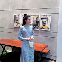 Áo dài gấm hoàng gia màu xanh- baby blue áo dài