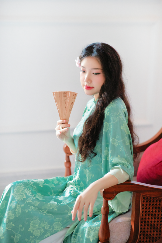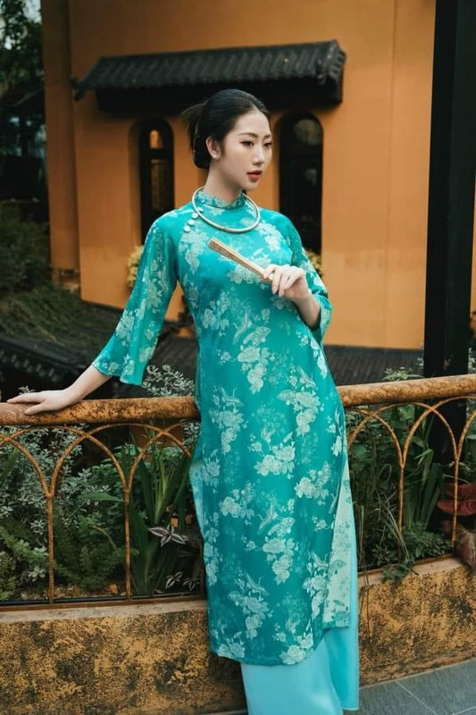 Áo dài gấm hai da hai mặt cách tân xanh/ Pre-made Modern Vietnamese Ao Dai