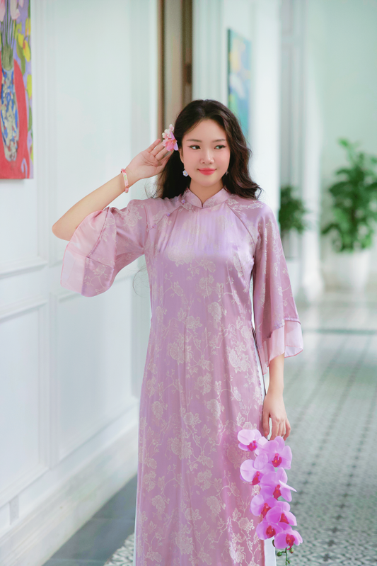 Áo dài gấm hoàng gia màu tím pastel- purple silk áo dài