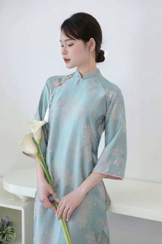 Áo dài gấm hoàng gia màu xanh pastel- mint áo dài