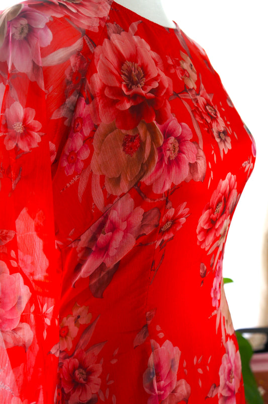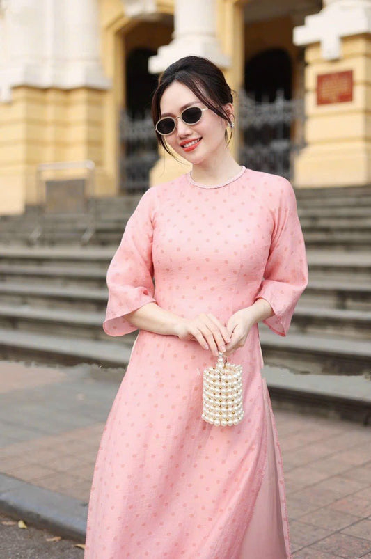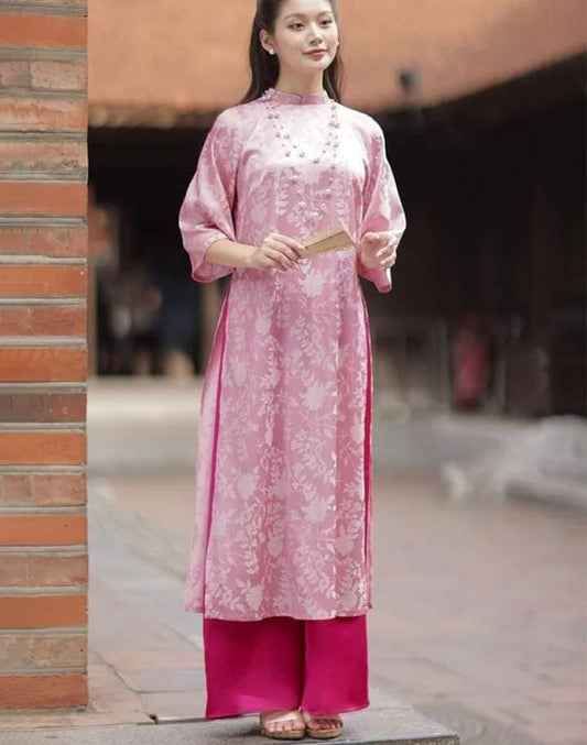 Bộ áo dài gấm cách tân hồng/ Pre-made Modern Vietnamese Ao Dai set