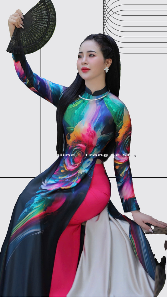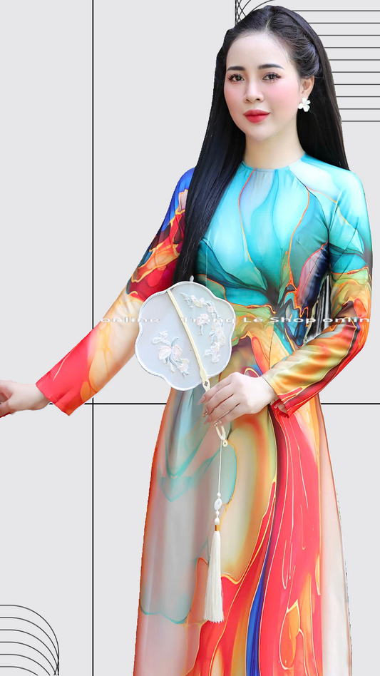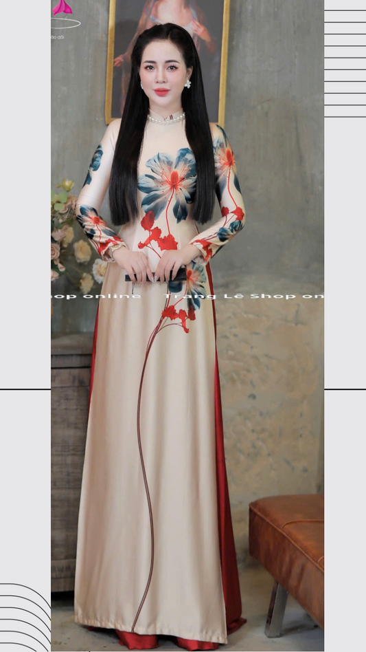 Bộ áo dài lụa Kim Sa- Set of Kimsa silk traditional aodai
